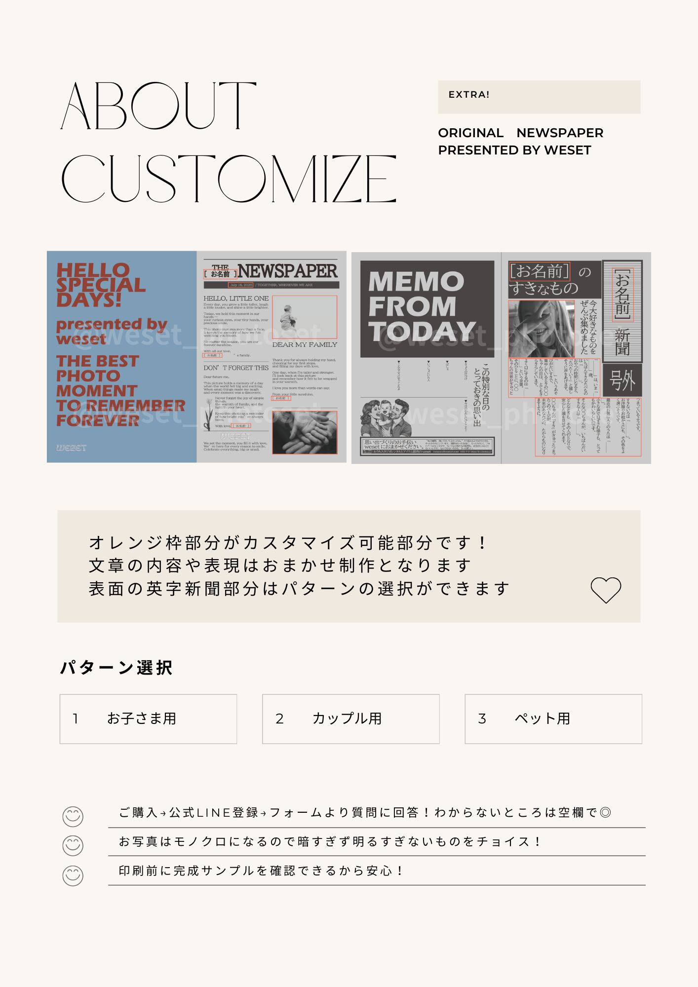 ◎お子さま用:成長のひとコマをニュースにして 大きくなった時に読ませてあげたい一枚に